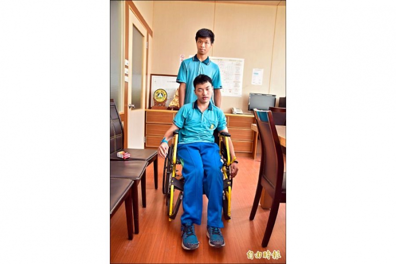 班导师王美苹说,平亮与益祥是国中同班同学,高一因对学校环境不熟悉,曾请高三学长帮忙推一阵子,之后就都由益祥负责,上课若需要换教室或要上厕所,班上同学也会帮忙撑扶或推轮椅。