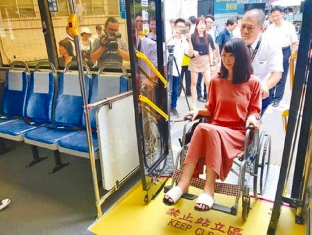交通处表示,低地板公车的车内地板与地面高低差只有30公分,可方便长者、幼童、行动不便的乘客上下车。另外低地板公车还可再降低地盘拉出「活动式斜板」,形成无障碍坡道,但由于司机要下车人工操作,需花点时间,希望乘客多点耐心与鼓励。