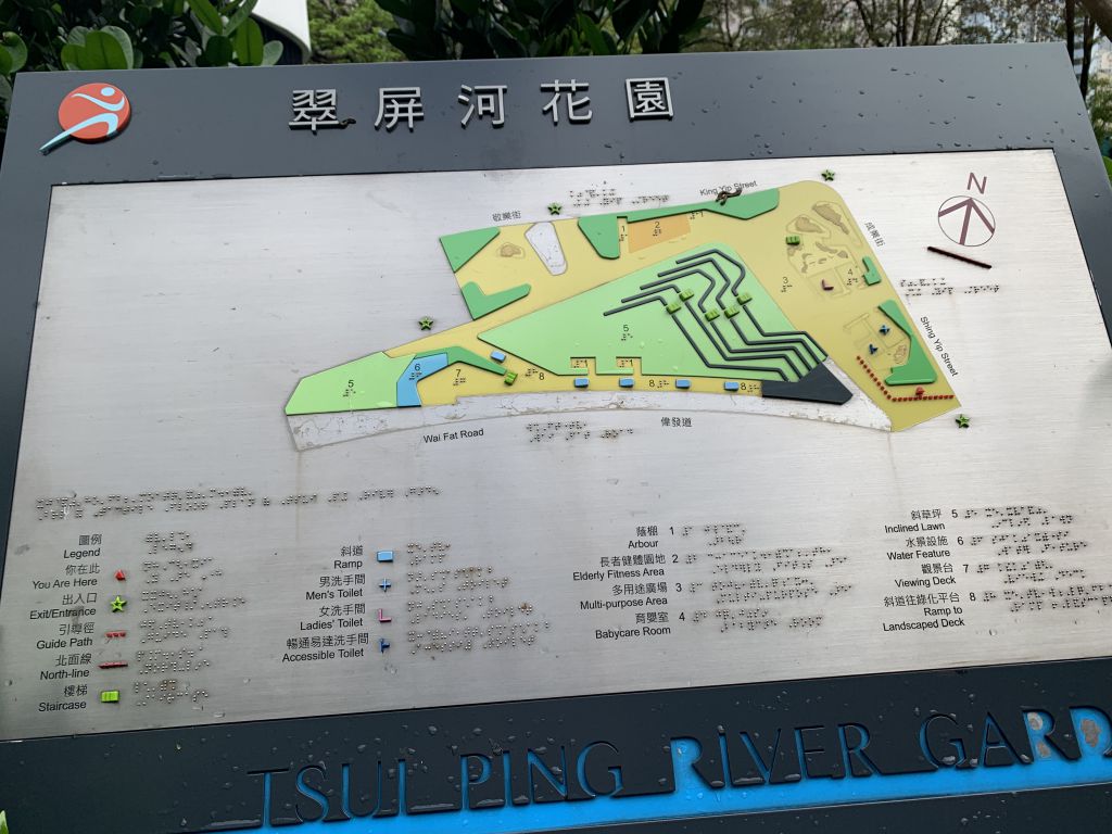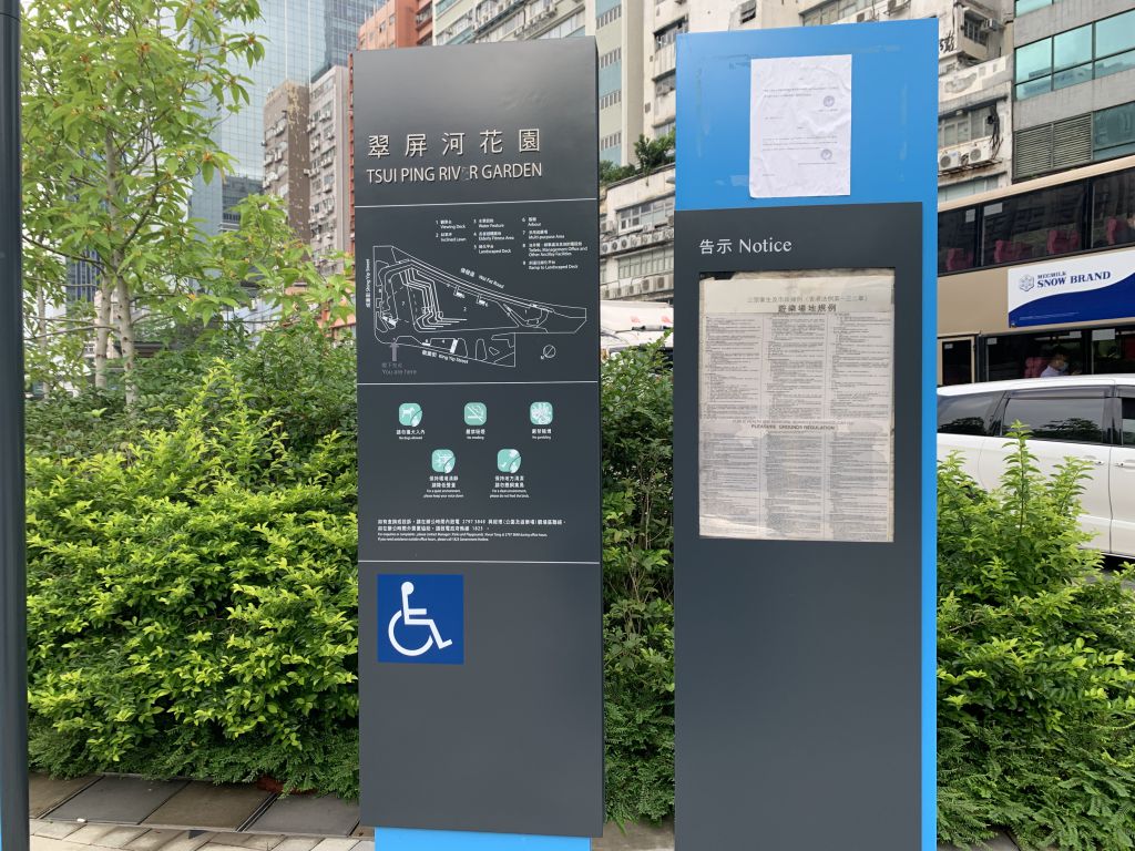 翠屏河花园是一个大型公共休憩场所,提供多元化的设施,包括一个有盖多用途广场、长者健身角、特色草坡、观景台、避雨亭、小型水景和园景区,以及其他附属设施。多用途广场旁设有阶梯式座位,供市民休憩或欣赏在场内举行的活动。