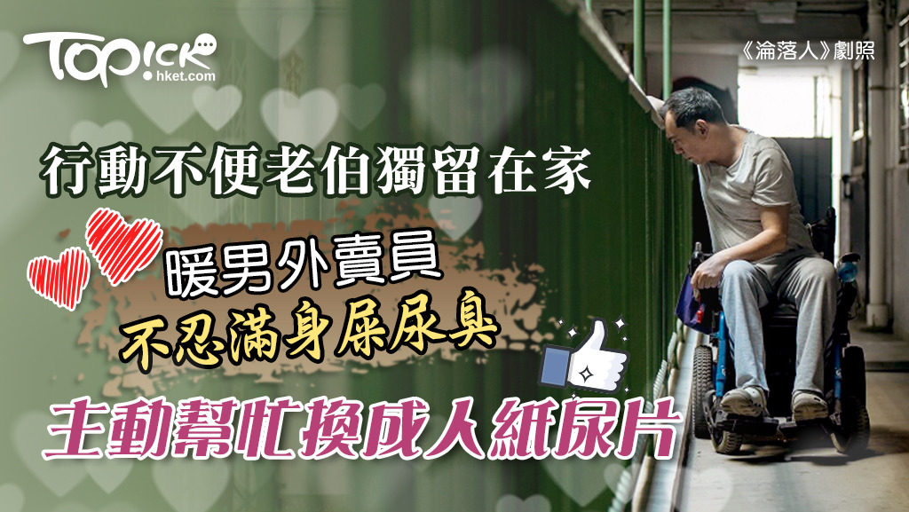 - [TOPick 親子]獨留患病兼行動不便老人在家,一旦出意外後果可大可小。台灣有外賣員在社交媒體表示,近日上門送外賣時,遇上一名行動不便的老伯下身僅穿成人紙尿片,獨自一人在家,他不忍對方滿身屎尿臭,於是主動幫忙為老伯換成人紙尿片。......