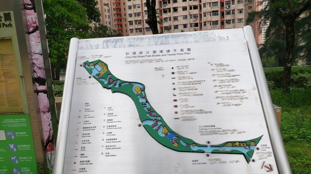彩禧路公園香港唯一以花崗岩為主題的主題公園,地方寬落,建議輪椅人士和家人一同前往。