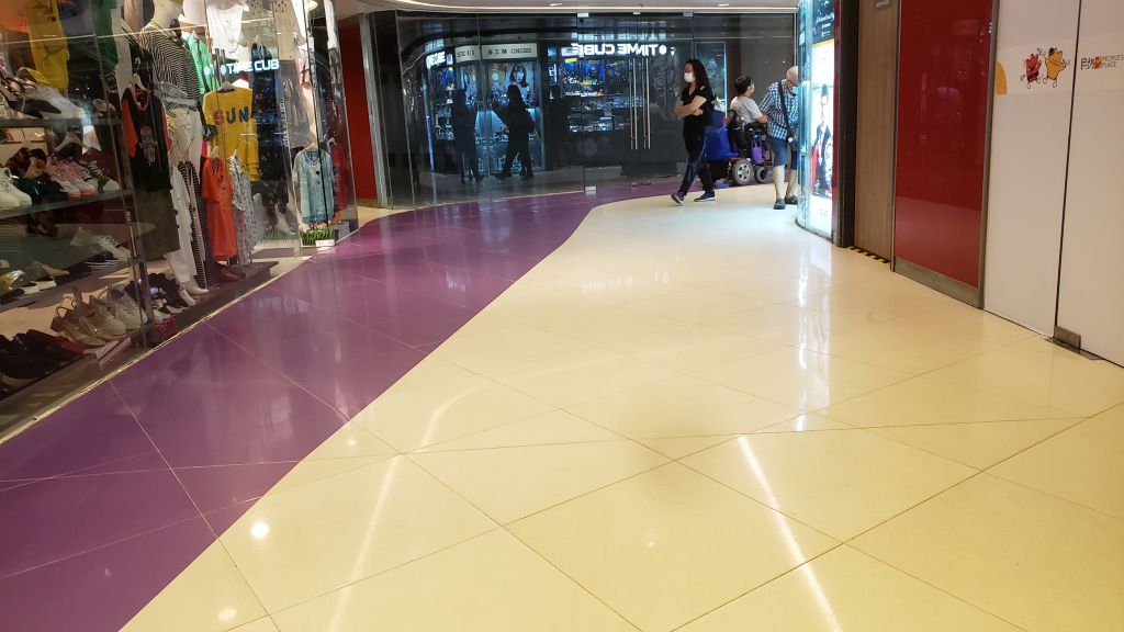 愛定商場位於安定村和友愛村,鄰近輕鐵站,無障礙設施充足,輪椅人士可以單獨前往。