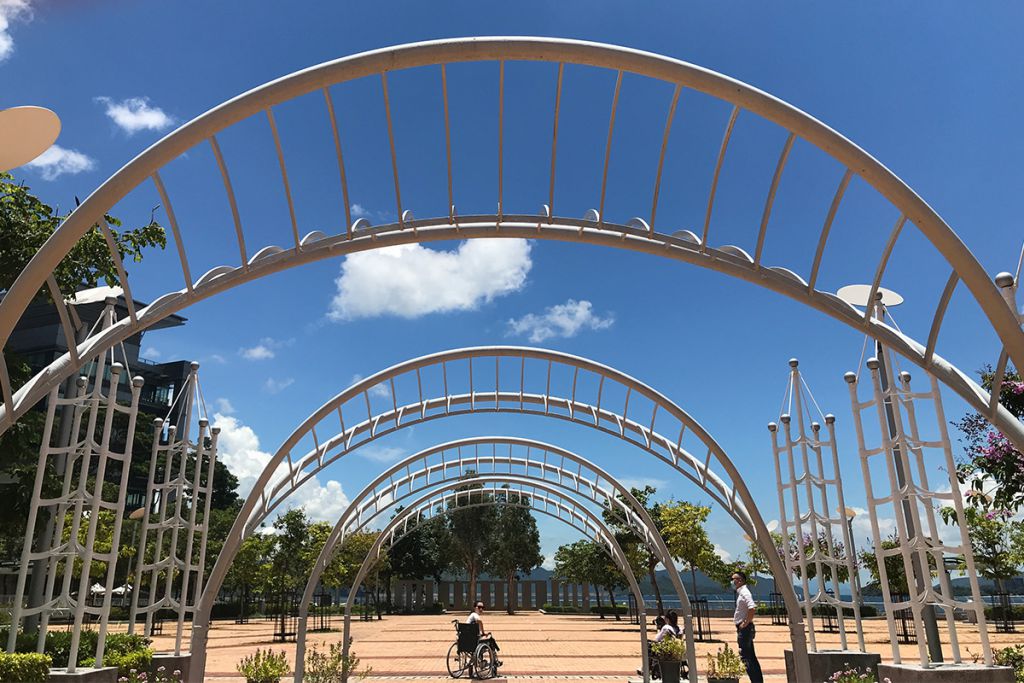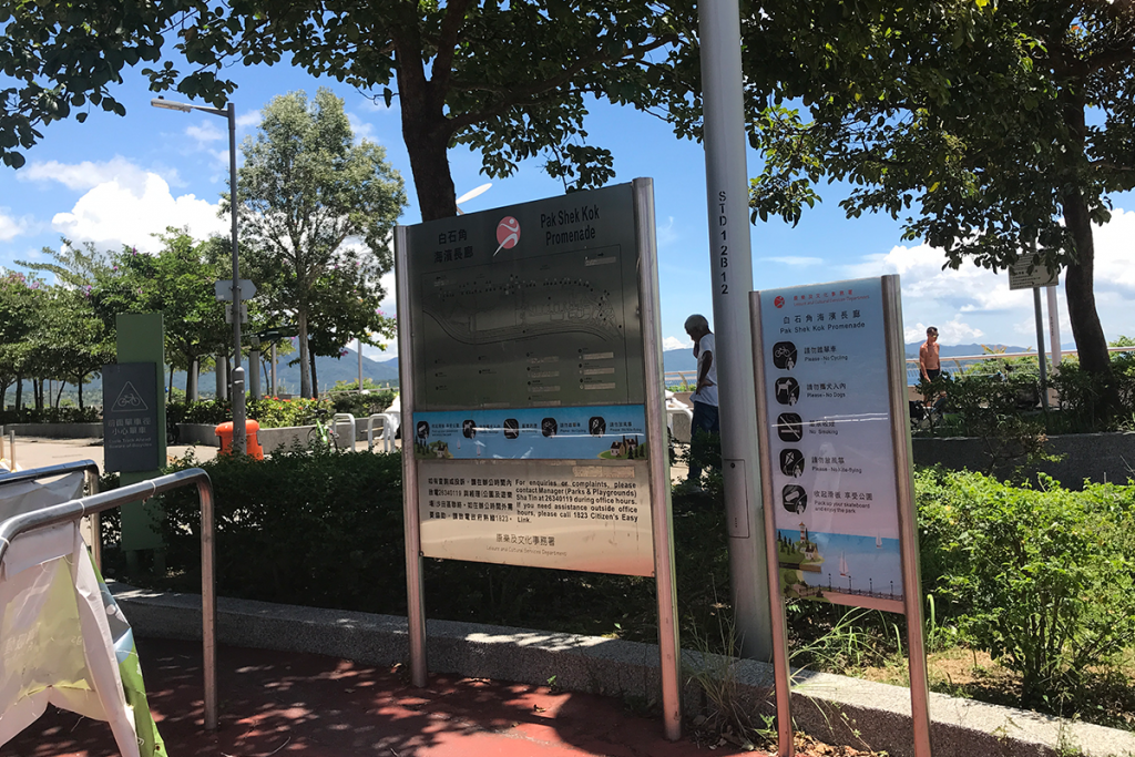 位於沙田馬料水的白石角海濱長廊連接沙田至大埔的單車徑,長廊的南段及北段部分投入服務。