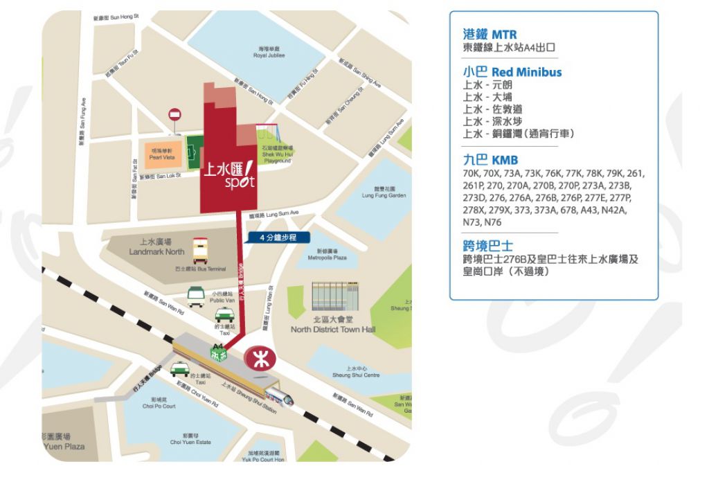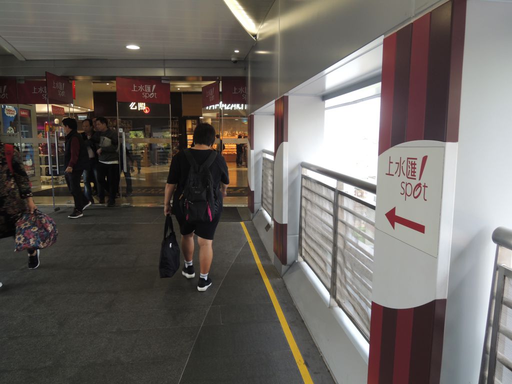 建議輪椅人士從港鐵站天橋前往上水匯比較方便。