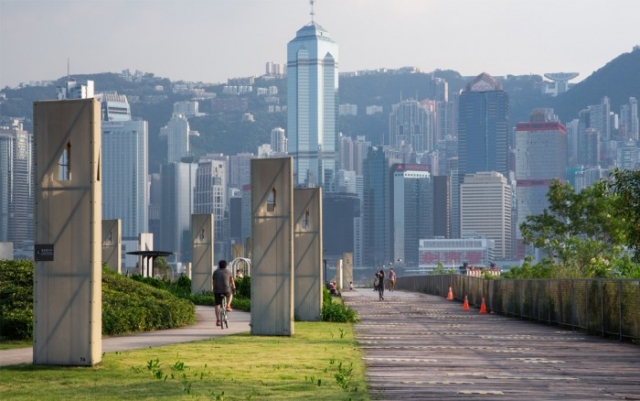 西九龍海濱長廊(West Kowloon Waterfront Promenade)是一處位於香港西九龍填海區南面的海濱地帶。西九龍海濱長廊可以看到香港島西及維多利亞港海景,是觀看維港景色的紹佳之處。由於西九龍海濱長廊不及尖沙咀海傍靠近市區,所以人流不算太多,環境比較清靜。長廊還設有遊樂區、單車徑、設有路燈的緩跑徑,加上附近的悠閒氣息,每天都有一些踏單車愛好者、駕車人士、攝影愛好者及釣魚人士來此一遊。